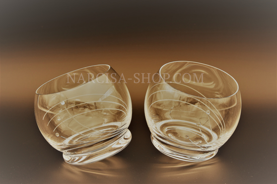 Set 6 kozarcev za Whiskey, z izbočenim dnom. Kozarci imajo dodane elemente Swarovskih kamnov.