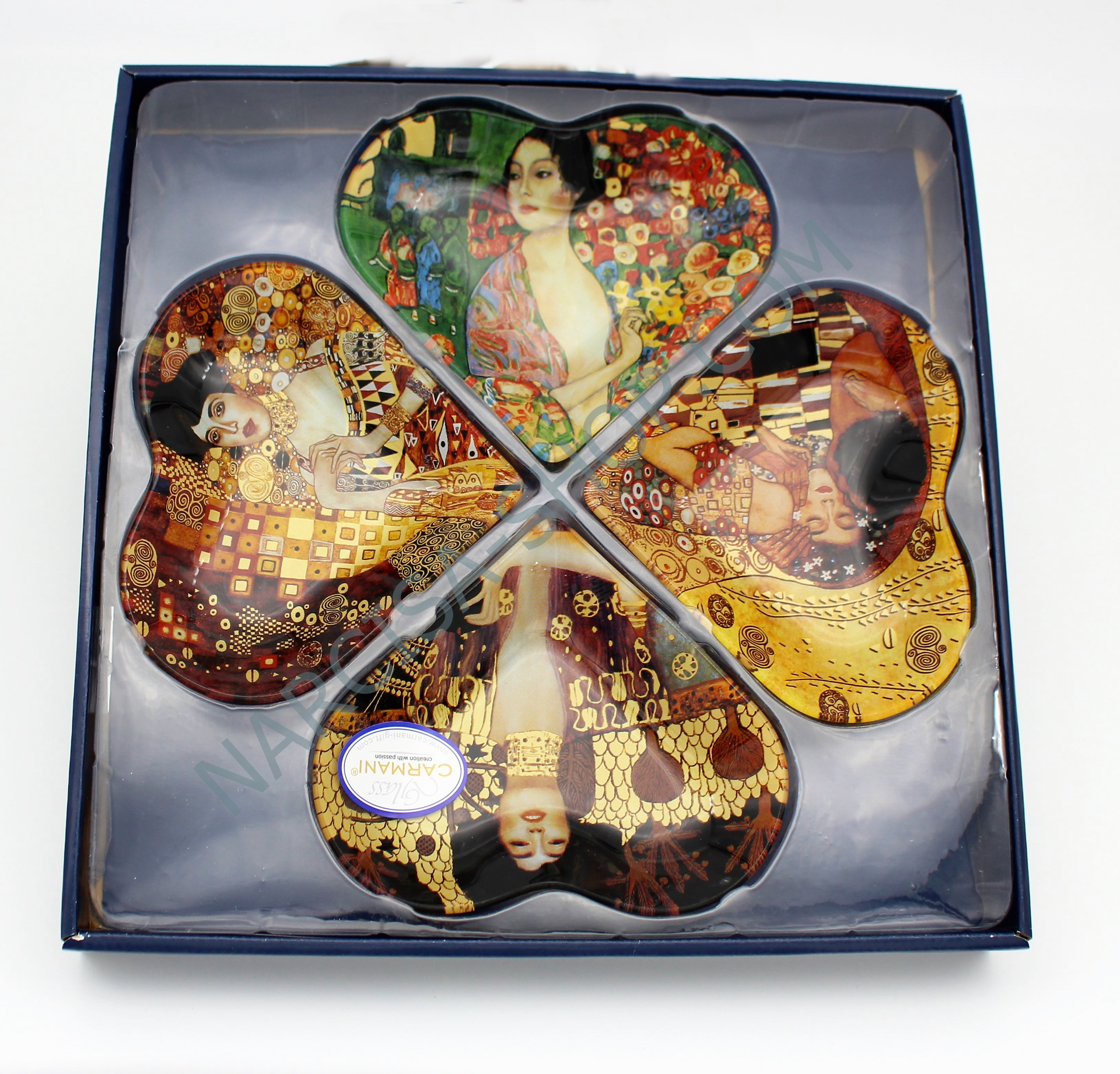 Stekleni krožniki v obliki srca, ki skupaj predstavljajo štiriperesno deteljico.